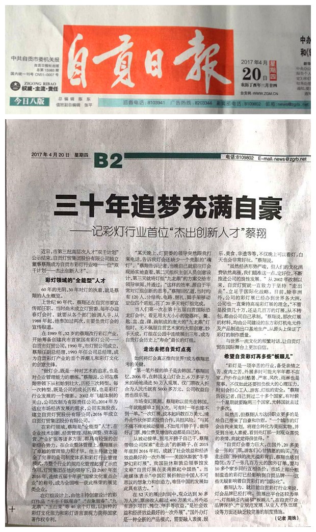 近日,《自貢日報(bào)》記者對蔡翔進(jìn)行了專題采訪報(bào)道。