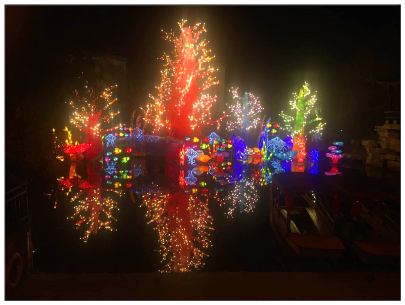 由自貢燈貿(mào)集團(tuán)股份有限公司承制的“2018臺(tái)兒莊古城新春燈會(huì)”于昨晚華彩綻放。東方彩燈制作的《中華節(jié)慶》、《砸錢眼》、《蓋碗茶》、《珊瑚?!贰ⅰ秳?dòng)漫樂園》、《氣球狗》燈組光彩神韻,熠熠生輝,滿園的燈火交織纏繞,合奏出古城新春的光影交響樂。