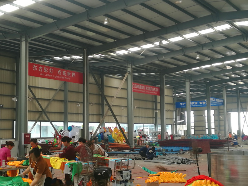 初夏寂靜的板倉工業(yè)園區(qū),東方彩燈出口生產(chǎn)基地呈現(xiàn)一派熱火朝天,繁忙的景象,燈貿(mào)集團2018年“北境之光——溫尼伯中華彩燈嘉年華”燈組制作工作正緊鑼密鼓而又井然有序的進行著。參加燈組制作的工人揮汗如雨:電焊、接線、切割、裱糊......焊花飛濺,綢緞翻舞,精美絕倫,栩栩如生的彩燈浸印著彩燈藝人的汗水,展示了彩燈工匠的技藝。