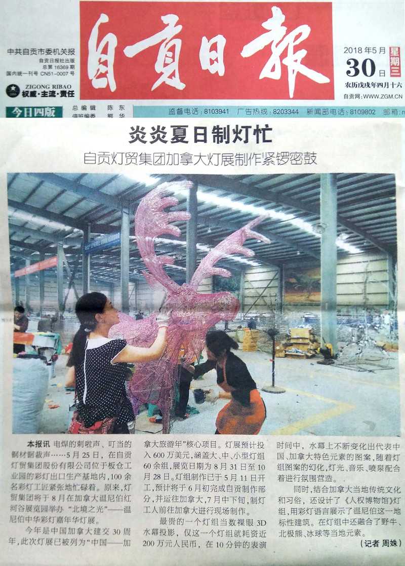 “北境之光——溫尼伯中華彩燈嘉年華”是“2018中加旅游年”的重頭戲,也是“中國-加拿大旅游年”核心項目,本次燈展得到自貢市委、市政府、自流井區(qū)委、區(qū)政府、自貢文廣新局、市商務局、自貢文旅投集團的高度重視和關心。自貢日報記者專程來到燈貿(mào)集團對本次燈展進行了專訪。