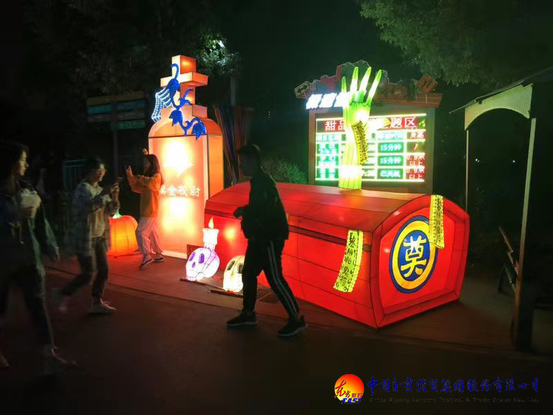 東方彩燈攜手武漢歡樂谷10月12日點(diǎn)亮萬圣節(jié)之夜,精心設(shè)計(jì)制作的14組“萬圣節(jié)”燈組驚艷亮相,各種造型鬼魅的燈組引得游客大為驚呼,使得大家躍躍欲試全新的七大鬼屋,勇敢的心油然而生,驚泣的淚隨處可見,過關(guān)的笑精彩無比。