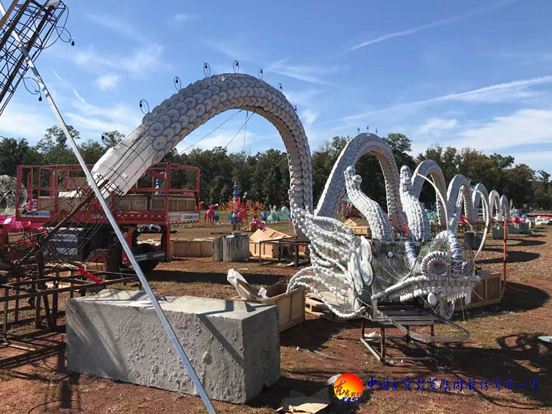 《中華瓷龍》燈組最具有文化代表性,龍是中華民族的圖騰,被賦予了強(qiáng)烈的漢民族人文氣息,而青花瓷又是中華陶瓷燒制工藝的致臻之作,代表著精湛的中國(guó)工藝智慧,兩者的碰撞交融,采用鋼骨架結(jié)構(gòu)與瓷器捆扎工藝技術(shù),頂部球泡變光和外光源的使用,在夜幕下,仙氣環(huán)繞,猶如神龍出海,威武挺拔,熠熠生輝?!吨腥A瓷龍》從瓷器采購(gòu)、半成品、包裝、運(yùn)輸、再制作等每一個(gè)環(huán)節(jié)都要求精益求精,任何一個(gè)環(huán)節(jié)的失誤都會(huì)導(dǎo)致失敗,技術(shù)難度之大可想而知,同時(shí)耗用各種規(guī)格青花瓷器上萬(wàn)件,再加上幾十位工匠師傅的縝密做工,最終向大家呈現(xiàn)出一幅純手工制作的超大瓷龍畫(huà)卷。