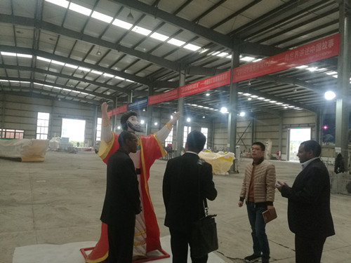 總領(lǐng)事Kebede Abera Ido一行在自貢燈貿(mào)集團(tuán)國韻公司副總經(jīng)理明祥東的陪同下參觀了東方彩燈出口基地生產(chǎn)車間,詳細(xì)了解了彩燈燈品制作、彩燈境外展出等相關(guān)情況。隨后,總領(lǐng)事Kebede Abera Ido一行來到燈貿(mào)集團(tuán)會(huì)議室,聽取自貢燈貿(mào)集團(tuán)“東方彩燈·點(diǎn)亮世界”全球巡展項(xiàng)目及公司近年外展情況的全面匯報(bào)。