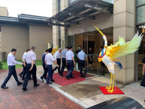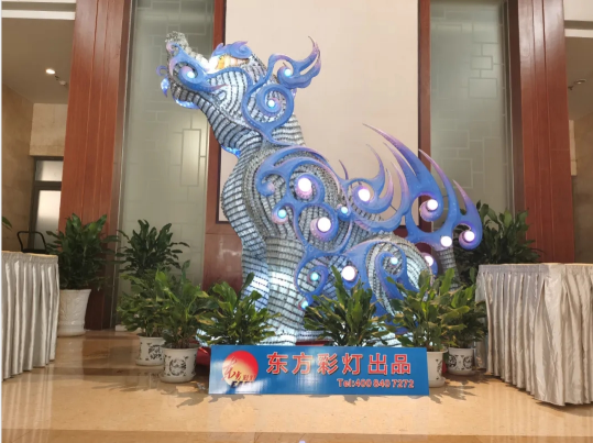 為彰顯自貢彩燈文化名片,市政府有關(guān)部門(mén)精選自貢燈貿(mào)集團(tuán)股份有限公司自有品牌“東方彩燈”出品的兩組具有傳統(tǒng)彩燈藝術(shù)特色燈組—“瑞鶴”、“諦聽(tīng)”呈放接待現(xiàn)場(chǎng)。
