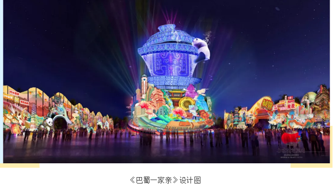 自貢燈貿(mào)集團(tuán)承制的二十七屆自貢國(guó)際恐龍燈會(huì)大體量、集群式燈組《巴蜀一家親》創(chuàng)新構(gòu)建沉浸式場(chǎng)景,構(gòu)思獨(dú)特,氣勢(shì)壯觀,充分彰顯“中國(guó)燈城”的無限魅力,讓古老的彩燈藝術(shù)在本屆燈會(huì)煥發(fā)出青春的光華,開啟盛世中華的新春慶典。