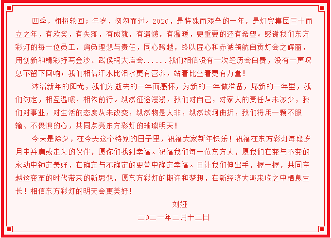 東方彩燈·節(jié)日祝福|叮!您有一份來(lái)自燈貿(mào)集團(tuán)的新年祝福