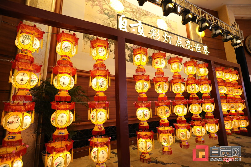 當(dāng)一盞盞獨具匠心、造型新穎、寓意深厚的自貢彩燈在會場上點亮,就引來大家的一片驚嘆聲,并收獲“咔擦咔擦”的照相聲。
