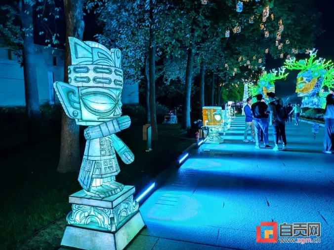 這次燈展由中青旅聯(lián)科策劃、自貢燈貿集團打造,設計靈感都來自于三星堆實體文物、考古發(fā)現(xiàn),包括包括青銅大立人、青銅縱目面具、青銅神樹、黃金面具、青銅神鳥等。